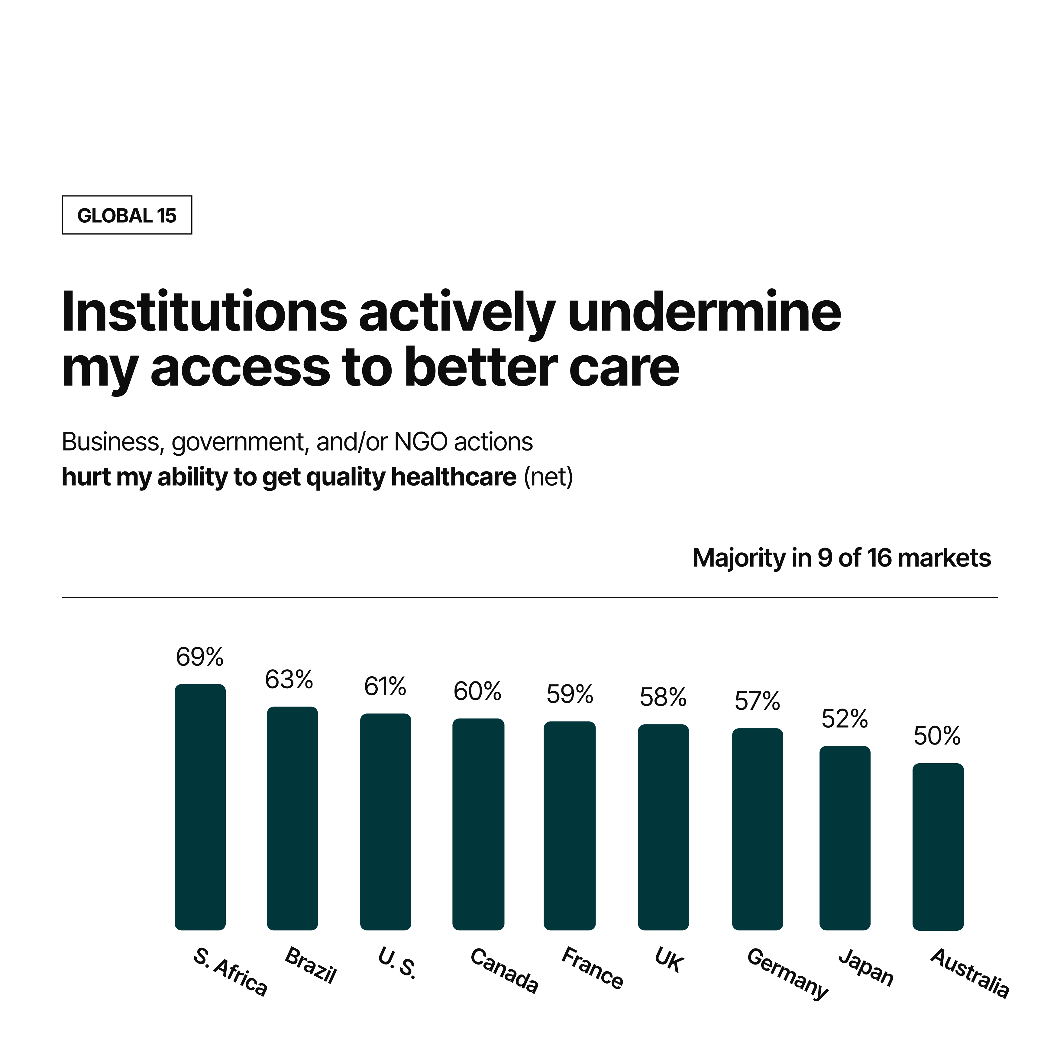 Australians report a deepening distrust in institutions, with none of the major sectors – government, business, media or NGOs – seen as capable of addressing the nation’s health needs.