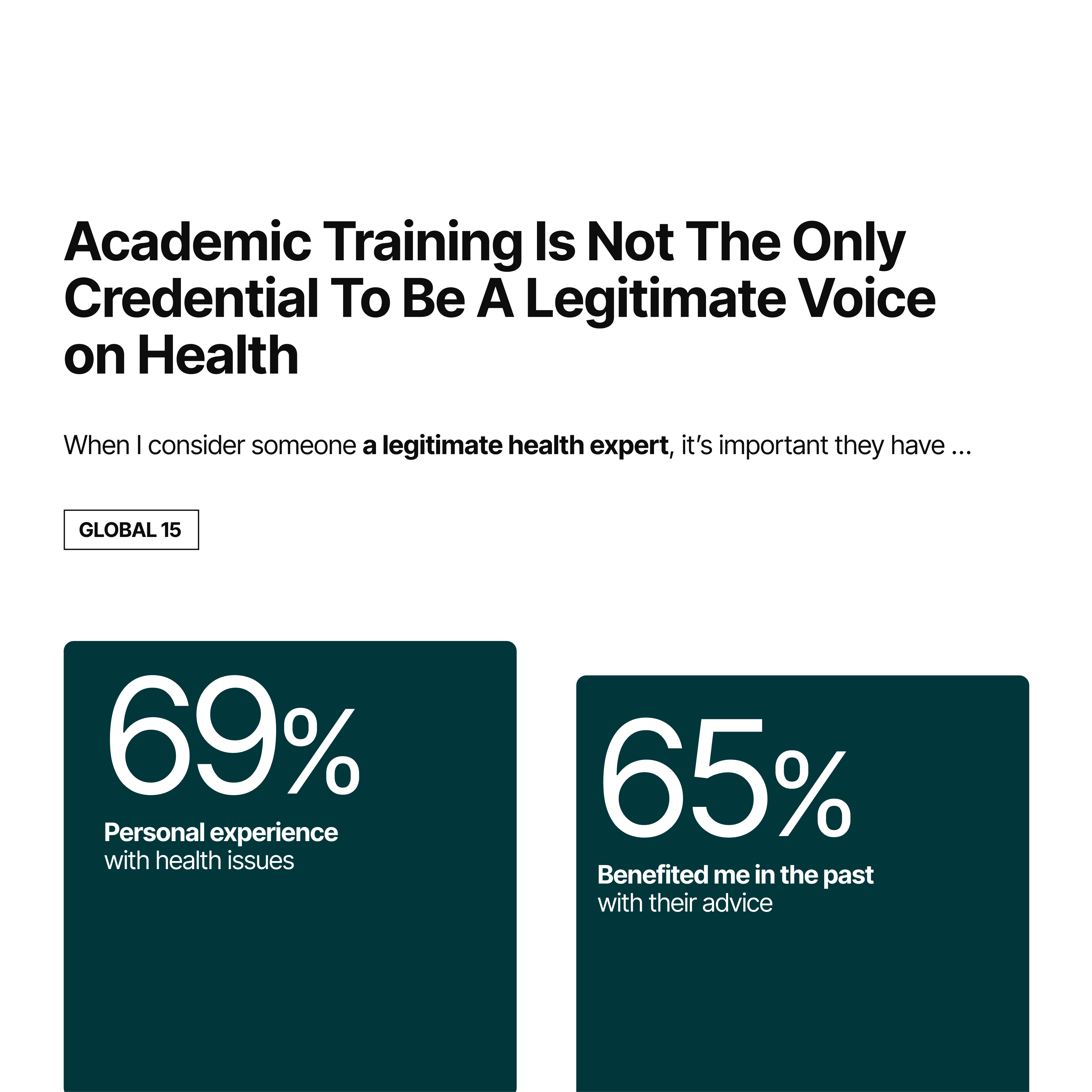 While formal academic training remains a key marker of legitimacy, young Australians are increasingly valuing personal experience, relatability, and prior helpful advice when deciding who to trust with their health. For many, lived experience now stands shoulder to shoulder with clinical expertise in shaping perceptions of credible health voices.