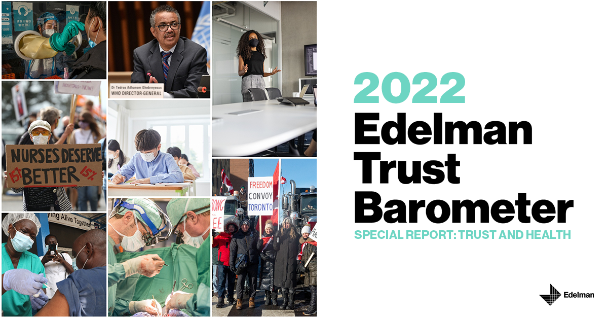 Frankfurt am Main, 13. April 2022. Vor mehr als zwei Jahren hat die WHO am 11. März 2020 Covid-19 als globale Pandemie eingestuft – die Welt, das Miteinander und das Vertrauen in die Institutionen haben sich in dieser Zeit verändert. Die Vertrauenswerte in den Gesundheitssektor sind volatil, das Vertrauen in Gesundheitsempfehlungen auf dem Prüfstand und Sichtweisen von geimpften und ungeimpften Personen uneins. Das zeigen die aktuellen Daten des Edelman Trust Barometer 2022 Special-Report: Trust and Health. Darin hat Edelman insgesamt 10.000 Menschen in 10 Märkten (Kanada, China, Frankreich, Deutschland, Japan, Mexiko, Nigeria, Südkorea, Großbritannien und den USA) zu den Auswirkungen von Vertrauen auf die Gesundheit und das Gesundheitssystem befragt.
