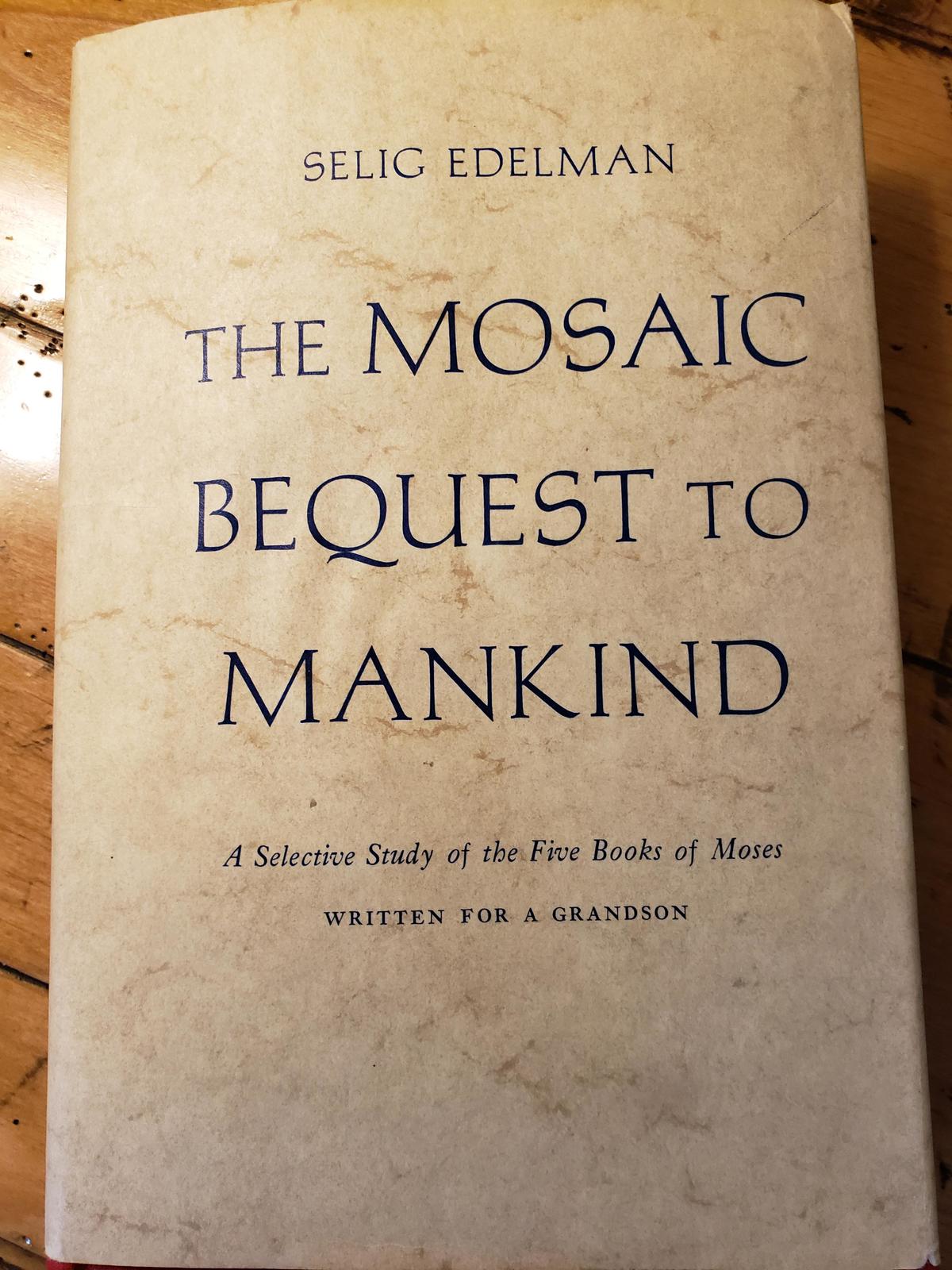 For those of you who regularly read my blog, you will recall a recent trip I made to Racine, Wisconsin for a client meeting. This week, I decided to visit my paternal grandfather, Selig Edelman. I did this not by visiting his grave site (have done several times as it is in New York City near my parents). I read his book, dedicated to me on my Bar Mitzvah fifty years ago, called The Mosaic Bequest to Mankind. The text covers the first five books of the Bible, plus a short chapter on Joshua as he enters the Promised Land. It was published in 1969, eighteen months before his death.