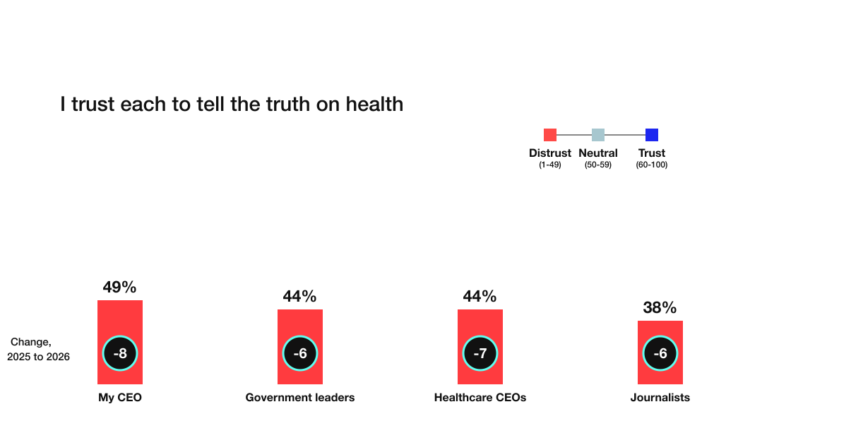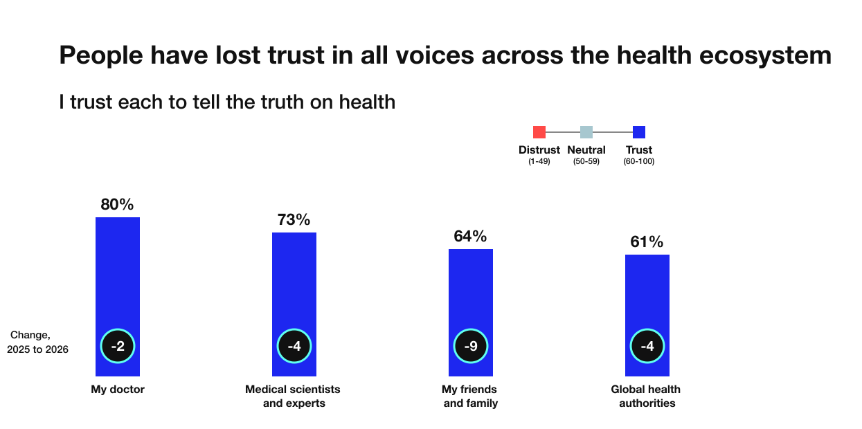 In one year alone, trust is falling across the entire health ecosystem. With so many voices, and declining trust across them, people are left feeling increasingly confused and uncertain about what to believe.