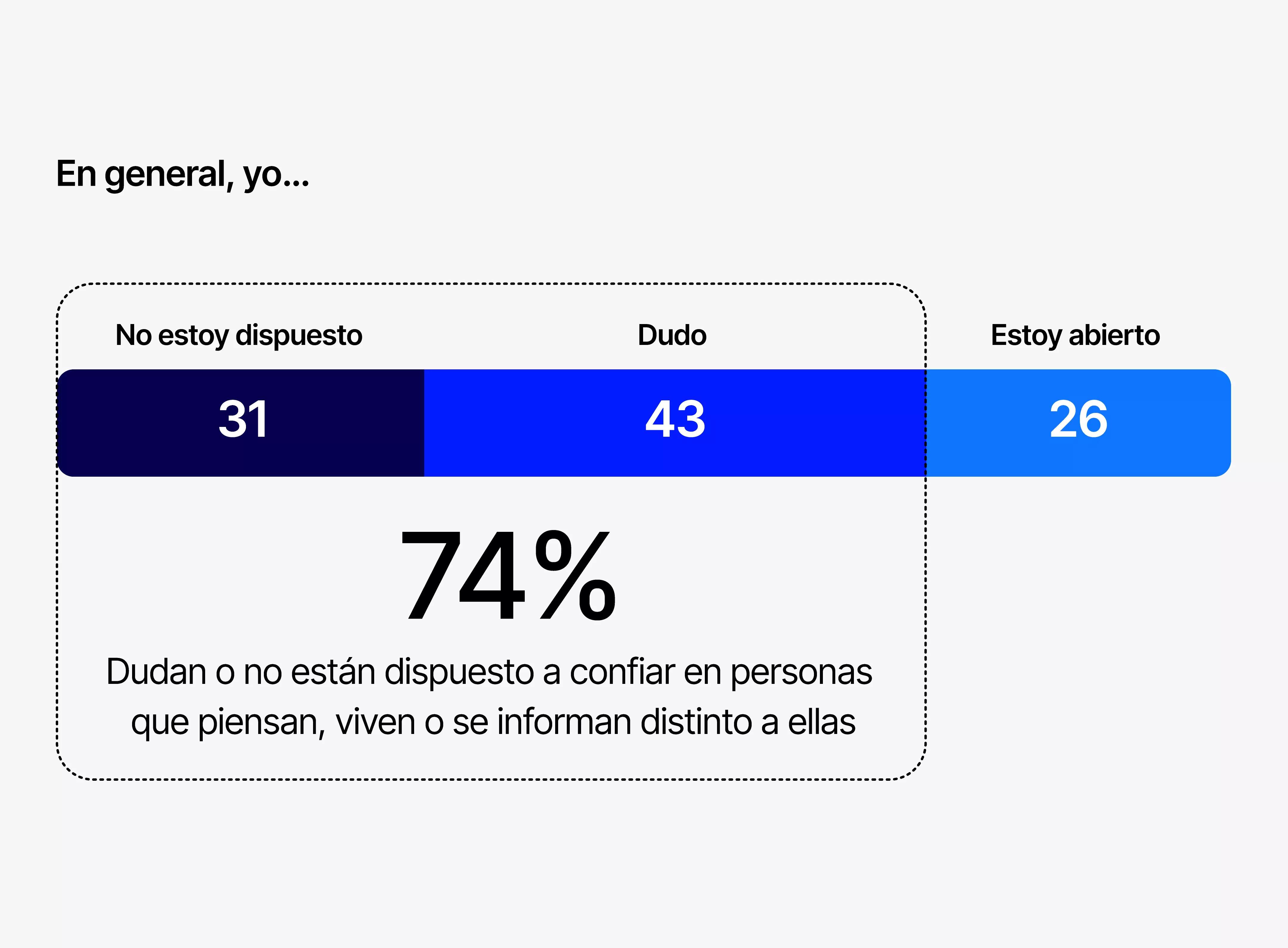74% dudan o no están dispuesto a confiar en personas que piensan, viven o se informan distinto a ellas.